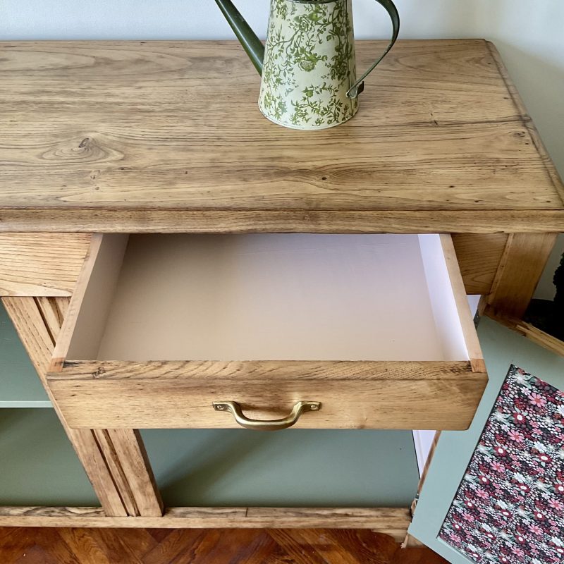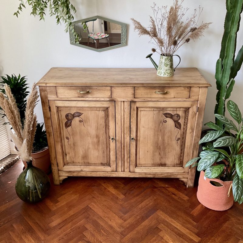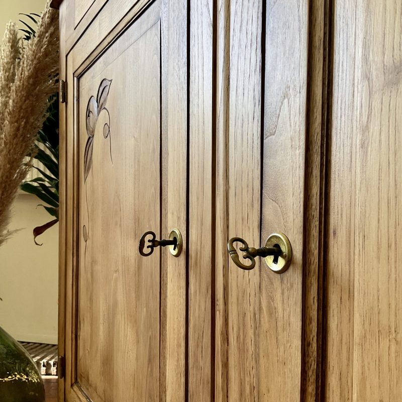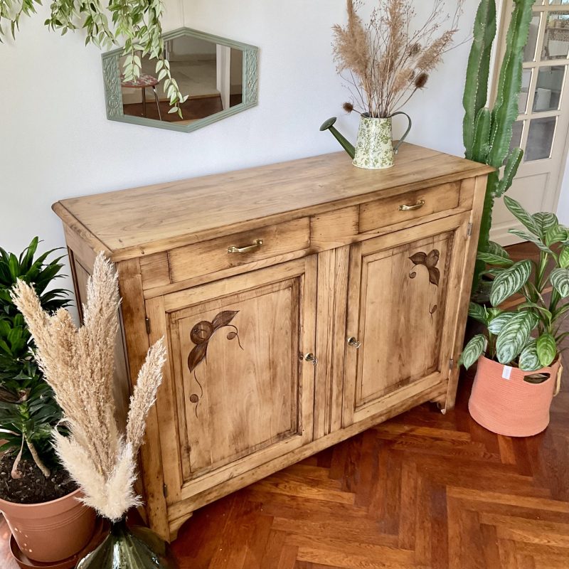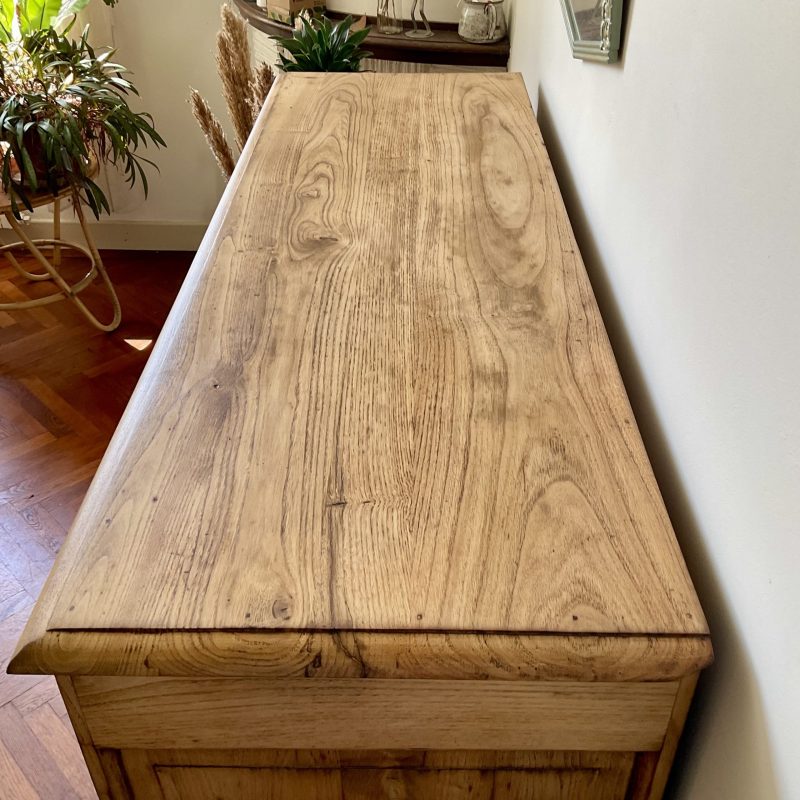 ✨ Et dire que j’ai hésité à peindre l’extérieur de ce buffet en châtaignier massif ! Je ne regrette pas mon choix de le laisser brut (protégé par un vernis mat incolore qui sait se faire oublier). Un très beau bois qui donne à ce meuble une personnalité unique. De discrètes traces laissées par le temps témoignent de son histoire singulière. Un meuble qui a une âme, comme on les aime 💚.
